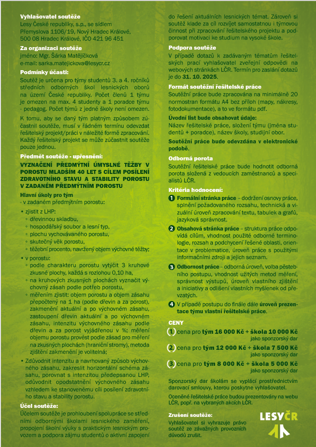 | do 31. 10. 2025 | nahlášení počtu a složení týmů za jednotlivé střední lesnické školy |