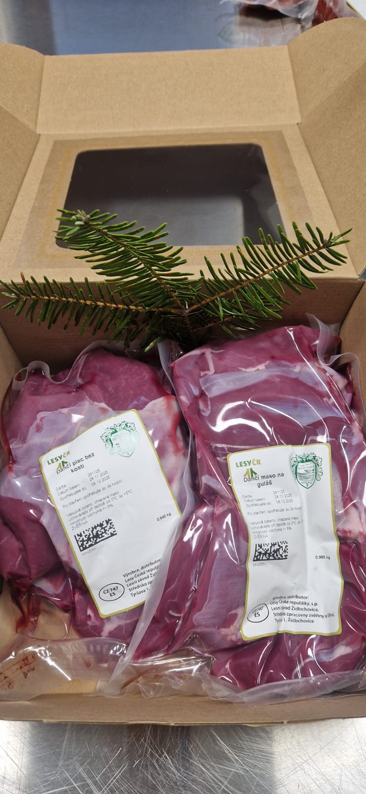 Hradec Králové, 4. prosince 2025 – Čerstvou zvěřinu a výrobky z ní připravily Lesy ČR i na letošní vánoční stůl. Delikatesy je možné nadělit svým blízkým třeba prostřednictvím dárkových poukazů platných tři měsíce od zakoupení. Ty jsou od 1. prosince k dostání a budou i po Novém roce.