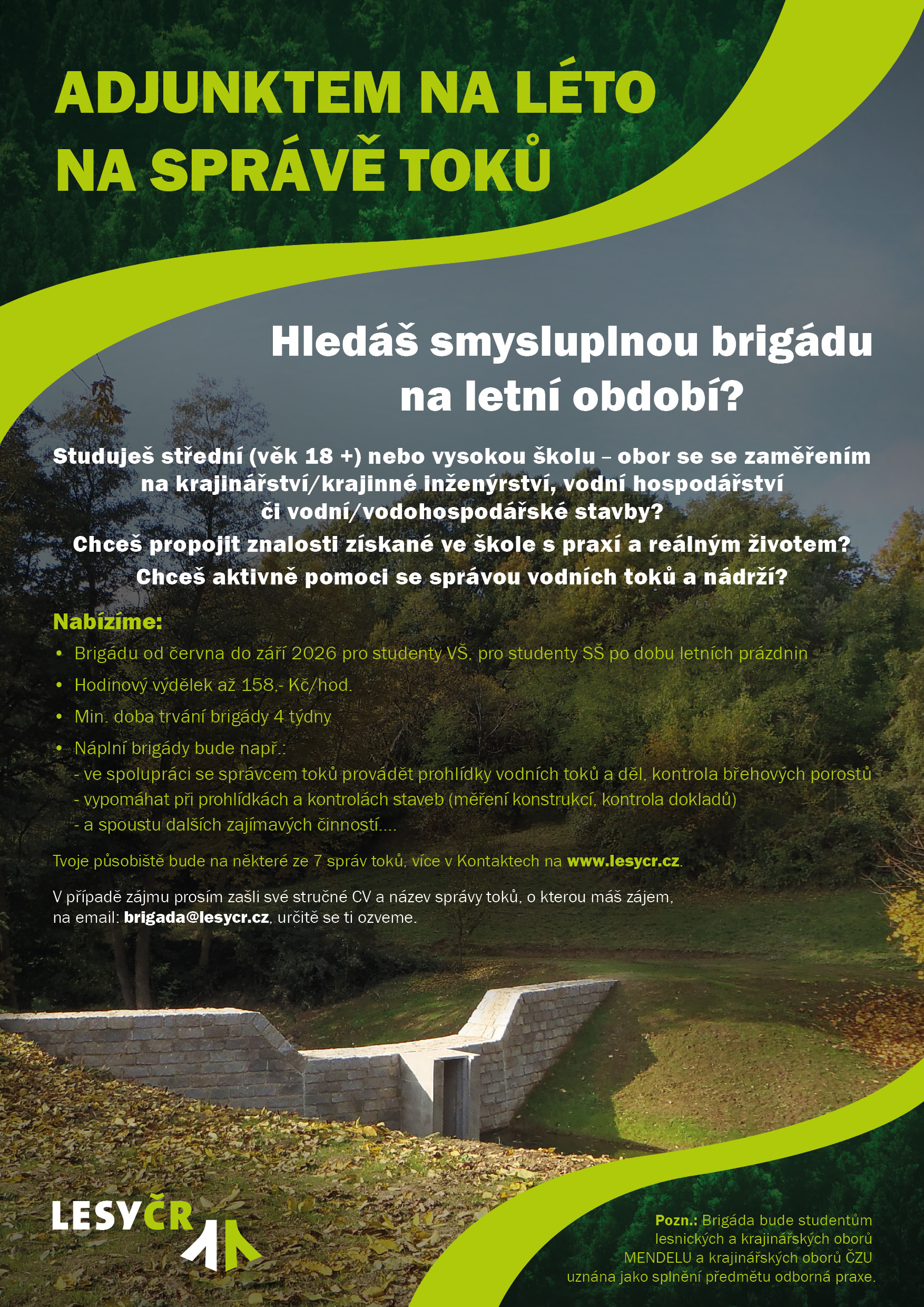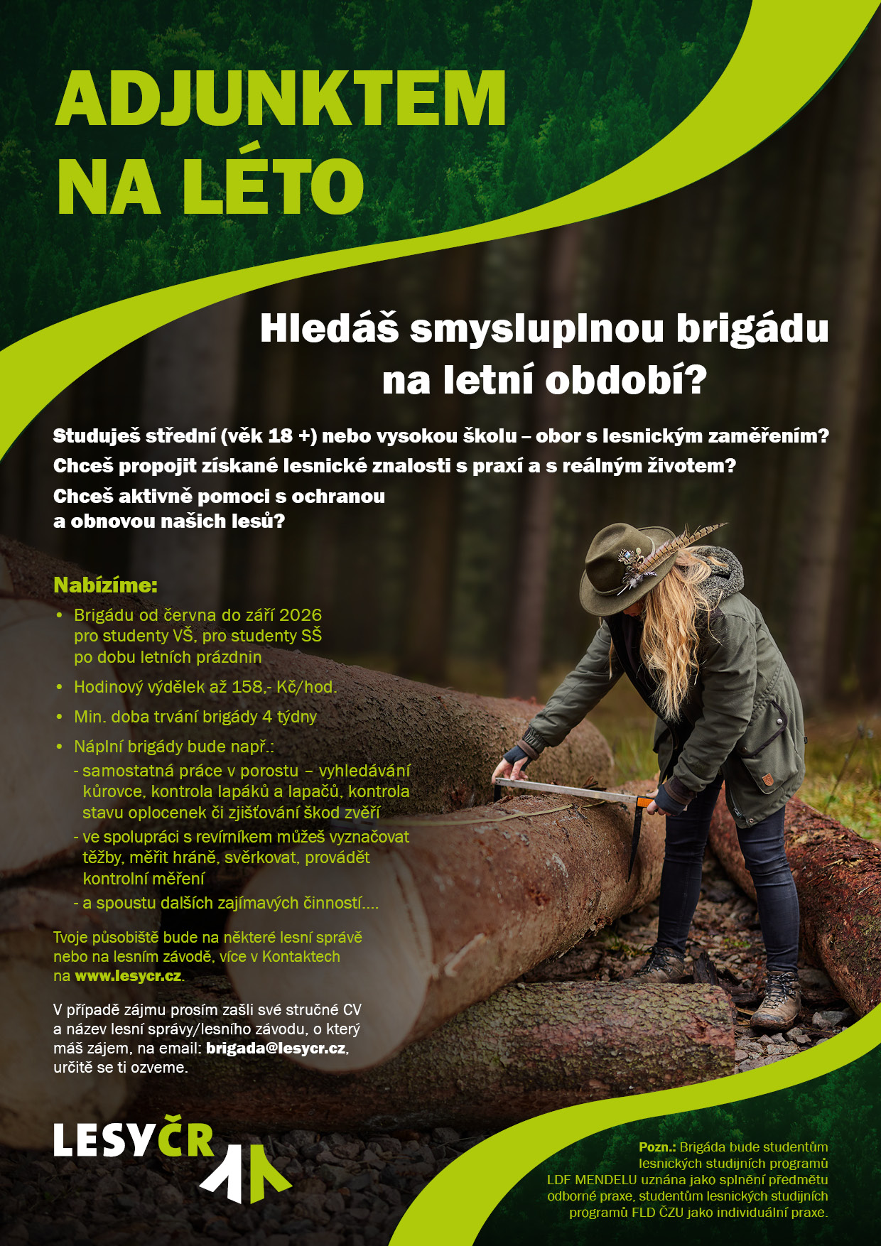 Středoškoláci i vysokoškoláci starší 18 let, kteří studují lesnictví, krajinářství či vodohospodářství, mohou i letos v létě získat praxi u Lesů ČR. Program Adjunktem na léto pokračuje už devátým rokem.