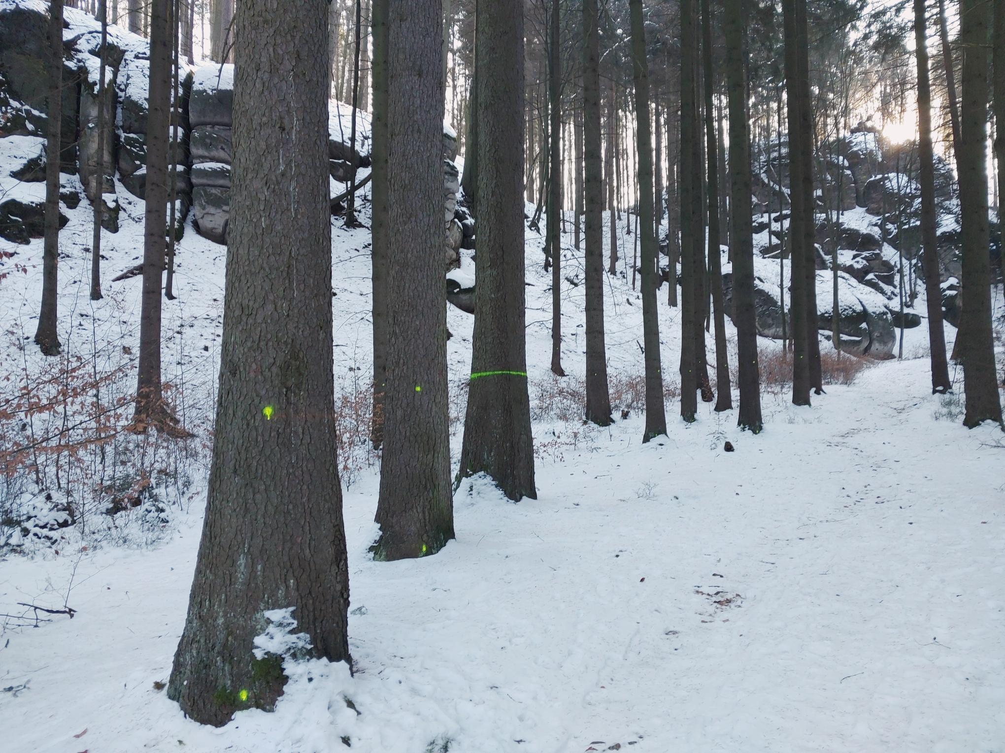 Kvůli obnově lesa je na dva týdny uzavřený úsek žluté trasy u symbolického hřbitova horolezců na Hruboskalsku
