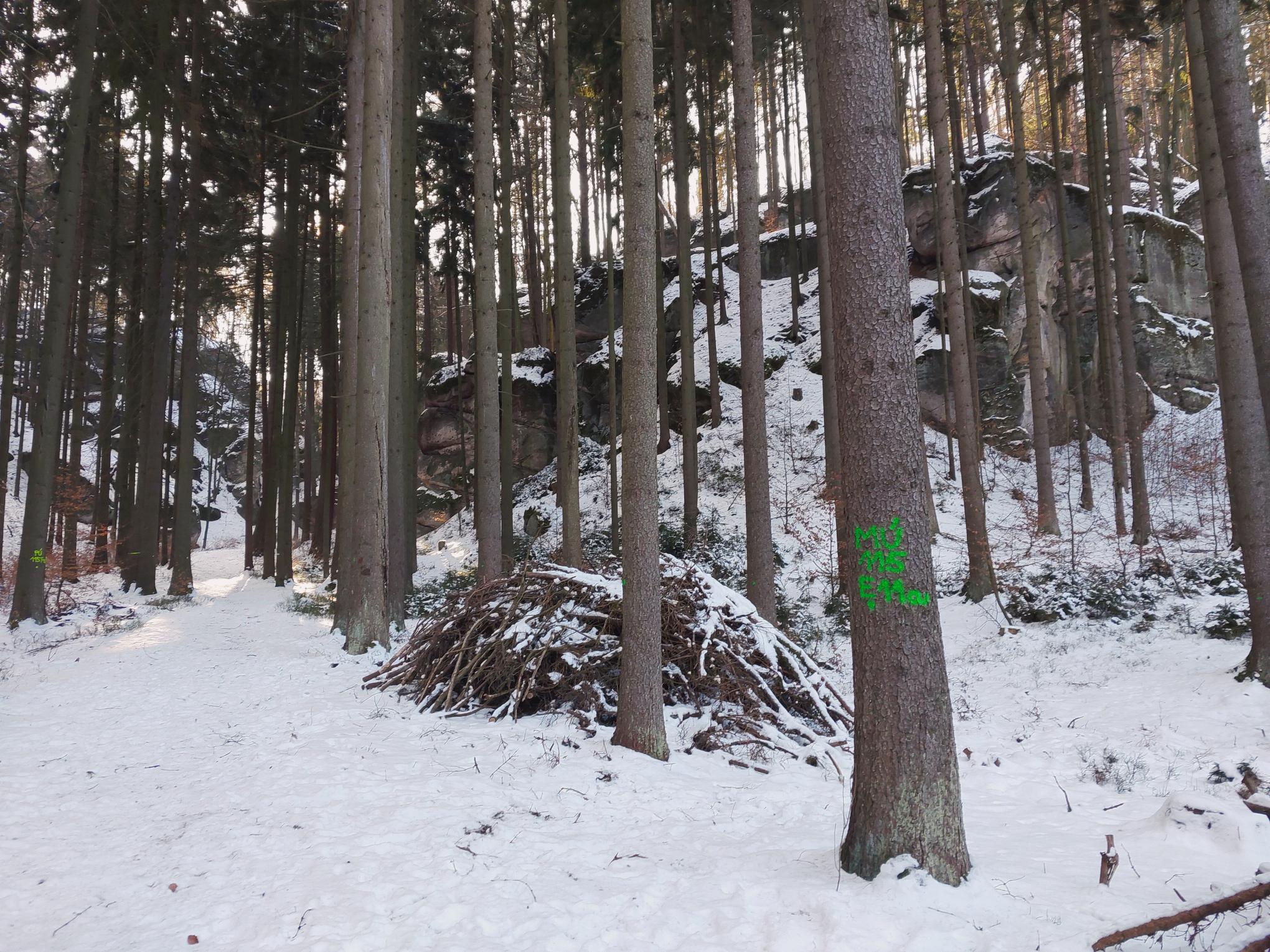 Desítky smrků se do konce ledna zpracují na Hruboskalsku v Českém ráji pod symbolickým hřbitovem horolezců. „Potřebný prostor a světlo tak dostanou mladé stromky, které se přirozeně ujaly ze semen mateřských dřevin,“ řekl tamější lesní správce Ondřej Pecháček. Kvůli bezpečnosti během těžby i přibližování dříví je tedy na dva týdny omezený vstup veřejnosti na část žlutě značené turistické trasy: https://mapy.com/s/fecaheluho. „Pokud se lidé chtějí přesto do oblasti vydat, úsek se dá snadno obejít,“ dodal Pecháček a navrhl možné varianty: https://mapy.com/s/mulogumuda nebo https://mapy.com/s/fuhecugate. Na všech přístupových cestách také lesníci rozmístili info tabule s vysvětlením krátkodobého omezení turistů.