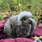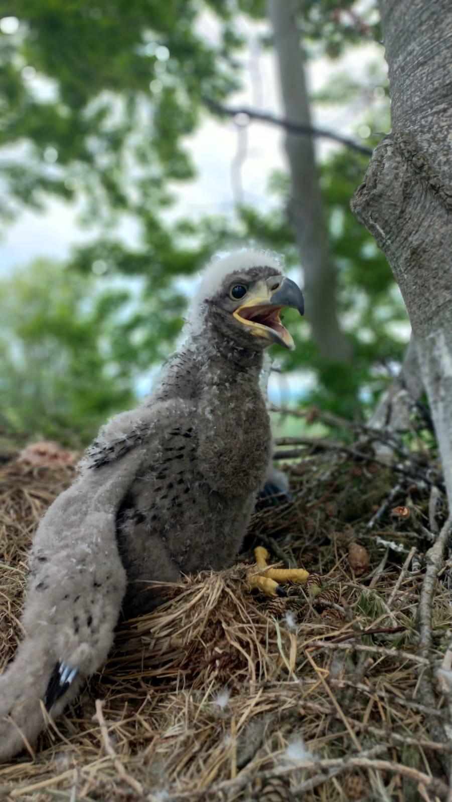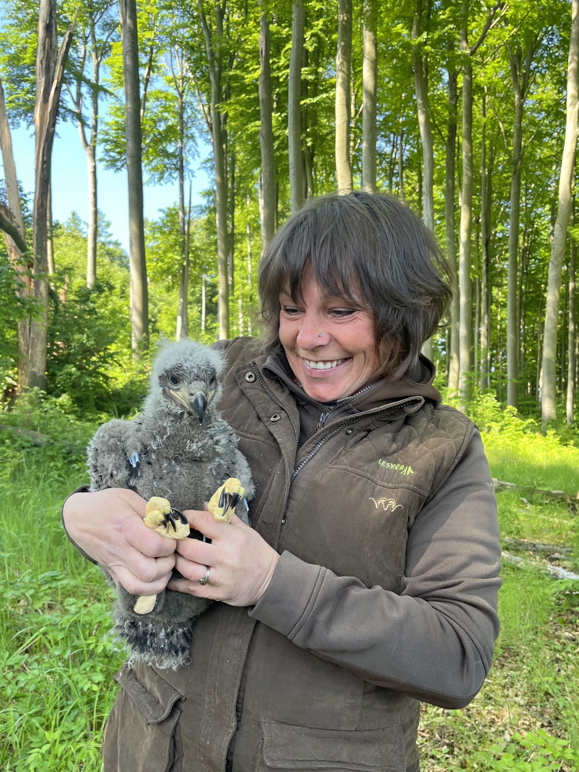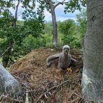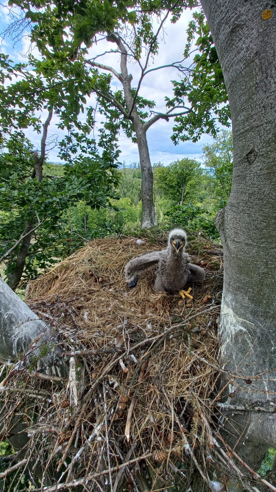 Dvacetidenní mládě chráněného orla mořského, velkého dravce z čeledi jestřábovitých, odchované rodiči v hnízdě na polesí Komorní Hrádek ve správě Lesního závodu Konopiště vůbec poprvé, okroužkovali v pátek 23. května lesníci s ornitology. Ti spolupracují také při monitoringu hnízd. „Během hnízdění jsme přerušili i lesnické práce,“ řekl František Dvořák, výrobní náměstek ředitele závodu z Lesů ČR. Díky kroužkování je možné sledovat, kde ptáci hnízdí, kudy migrují nebo jak dlouho žijí. Pak se lépe plánují opatření související s ochranou těchto druhů. Snímky z hnízda pořídil stromolezec Lubor Křížek, na polesí se projektu věnuje Zuzana Urie Stejskalová.