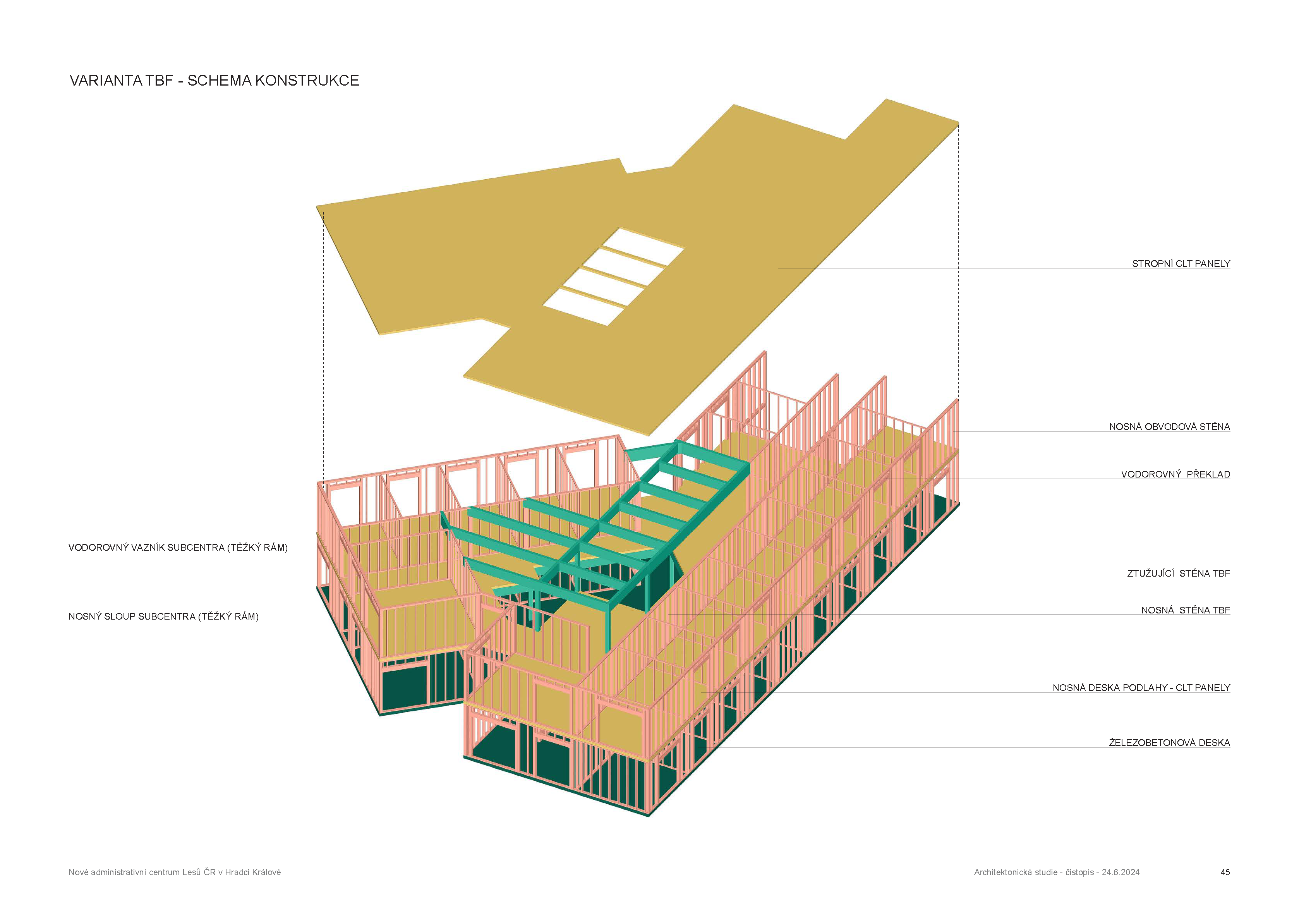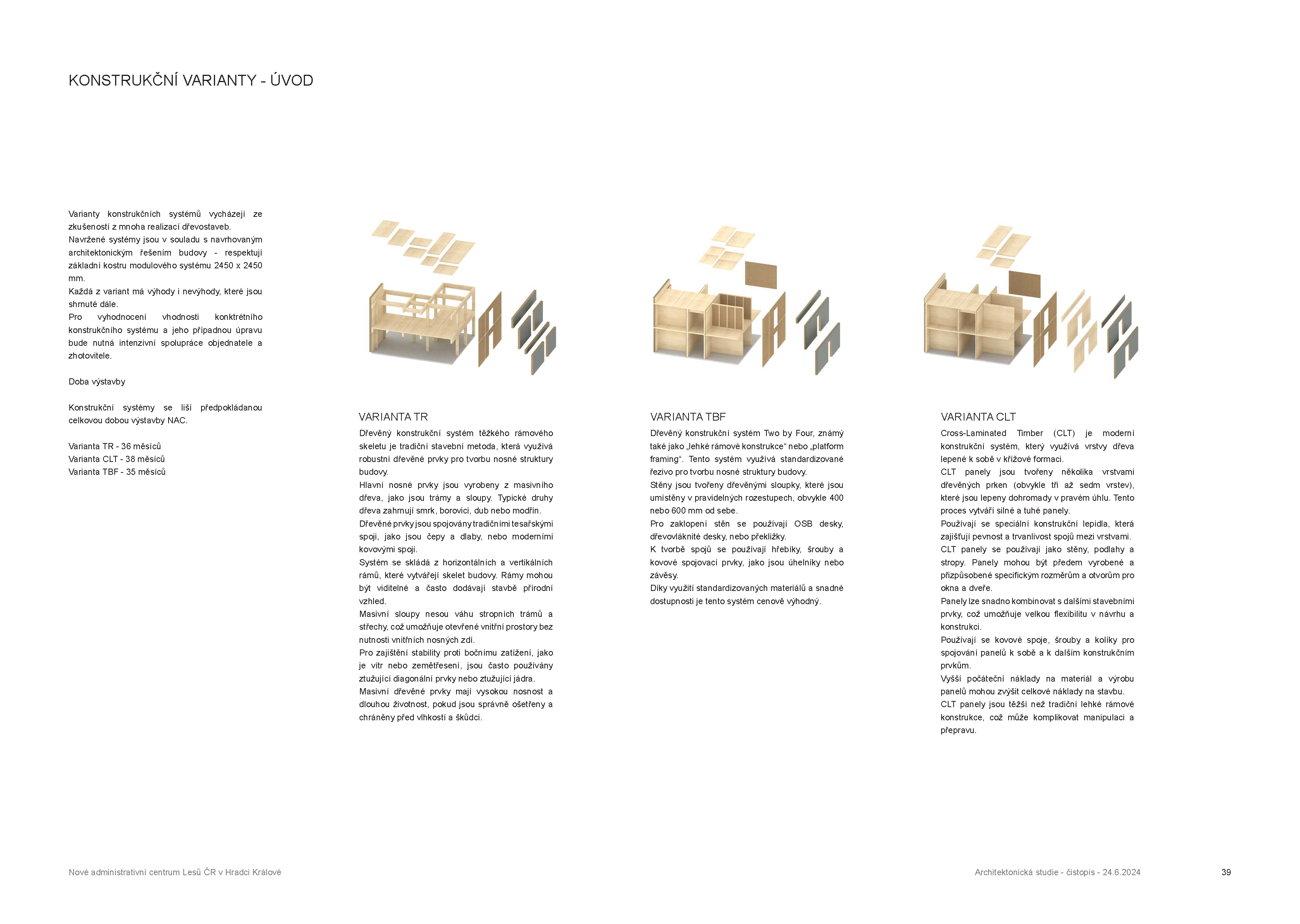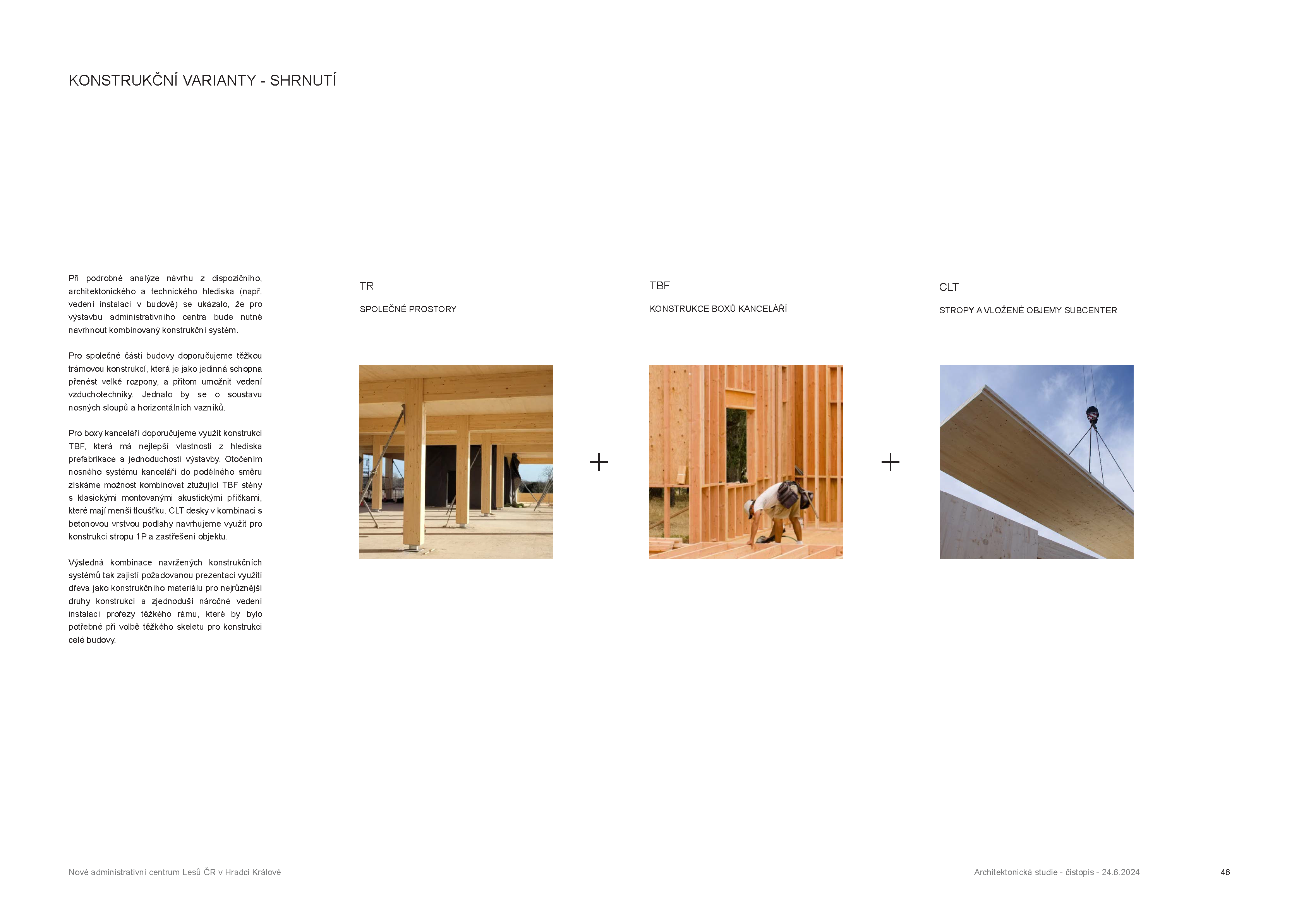 Obnovení přípravy projektu Nového administrativního centra LČR v Hradci Králové bylo zahájeno na základě souhlasu ministra Ing. Zdeňka Nekuly ze dne 22.7.2022 (Dopis č.j. MZE-40994/2022-16221). Nynější příprava projektu navazuje na vítězný návrh Sdružení SDRUŽENÍ CHYBIK + KRISTOF ASSOCIATED ARCHITECTS s. r. o. + K4 ARCHITECTS & ENGINEERS + Ing. Ivo Stolek, který je však kompletně přepracován tak, aby se jednalo o vzorovou dřevostavbu, která bude kombinovat více konstrukčních systémů (rámová konstrukce, CLT panely a 2by4). Kombinace těchto konstrukčních systémů byla zvolena na základě zpracované Studie konstrukčních řešení – jedná se o nejefektivnější kombinaci konstrukčních systémů, která zajistí požadovanou rychlost výstavby (prefabrikace), subtilnost a efektivnost nosné konstrukce.