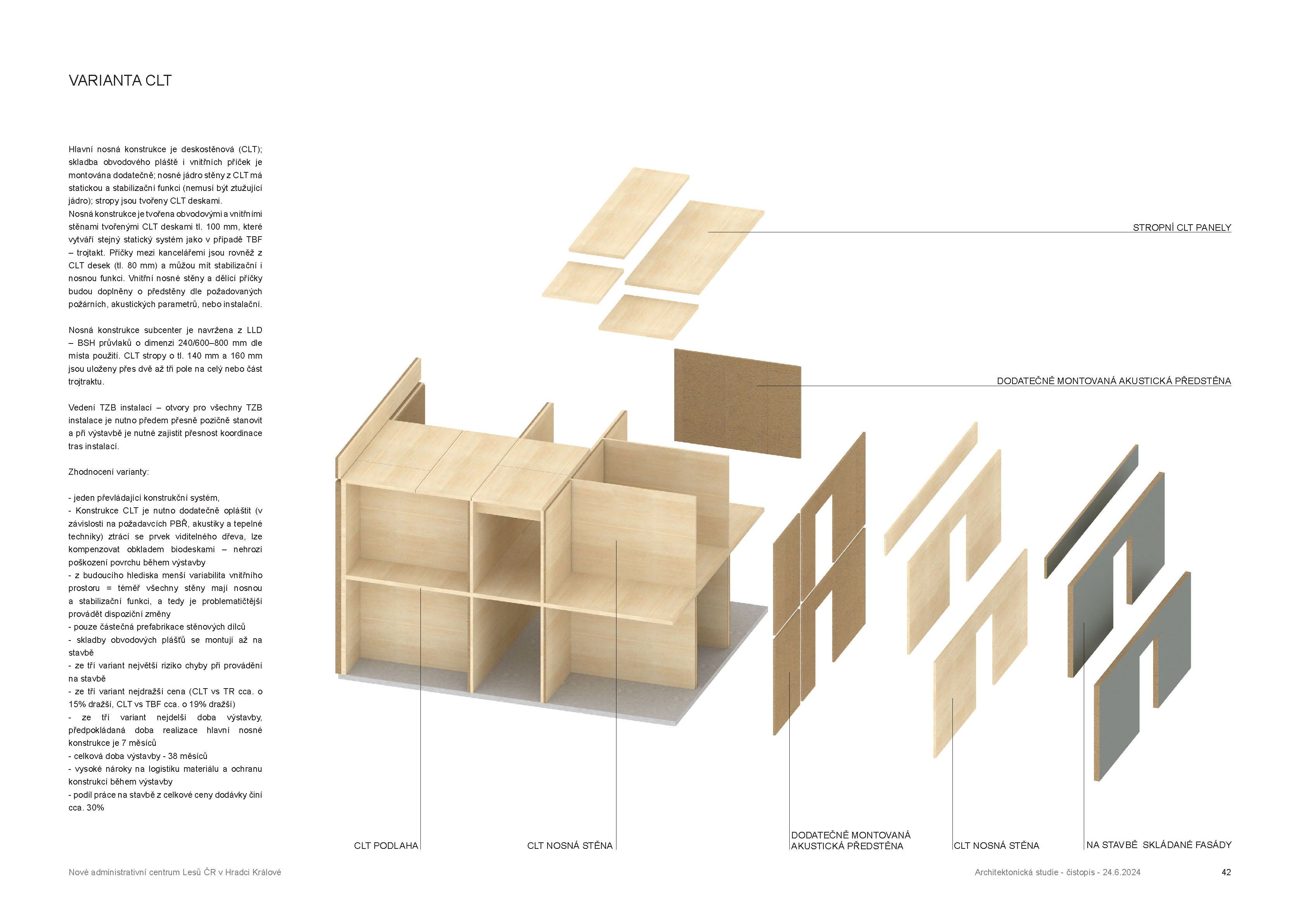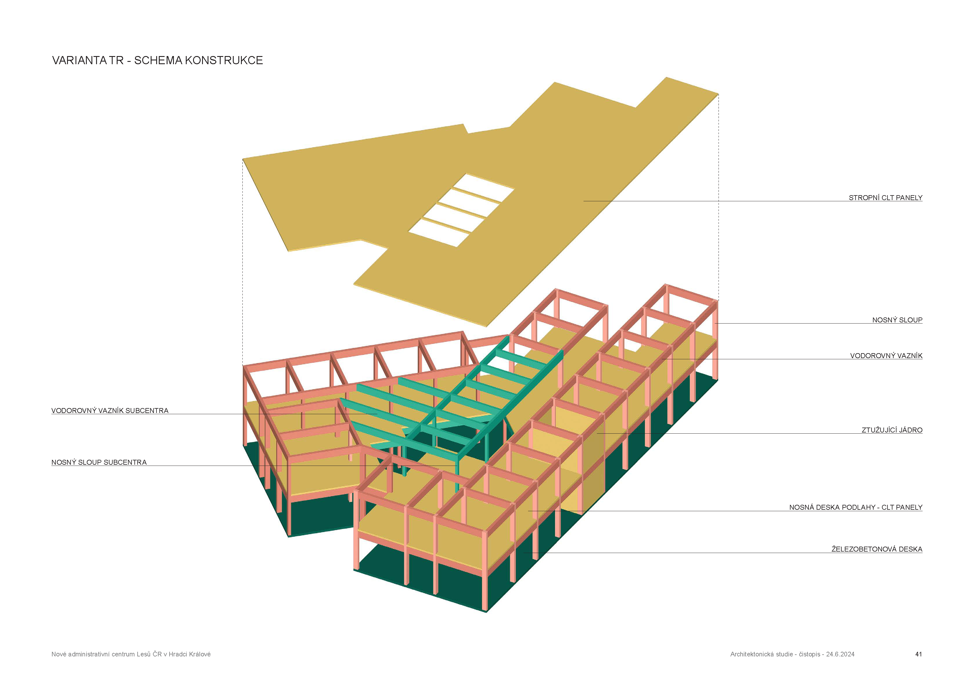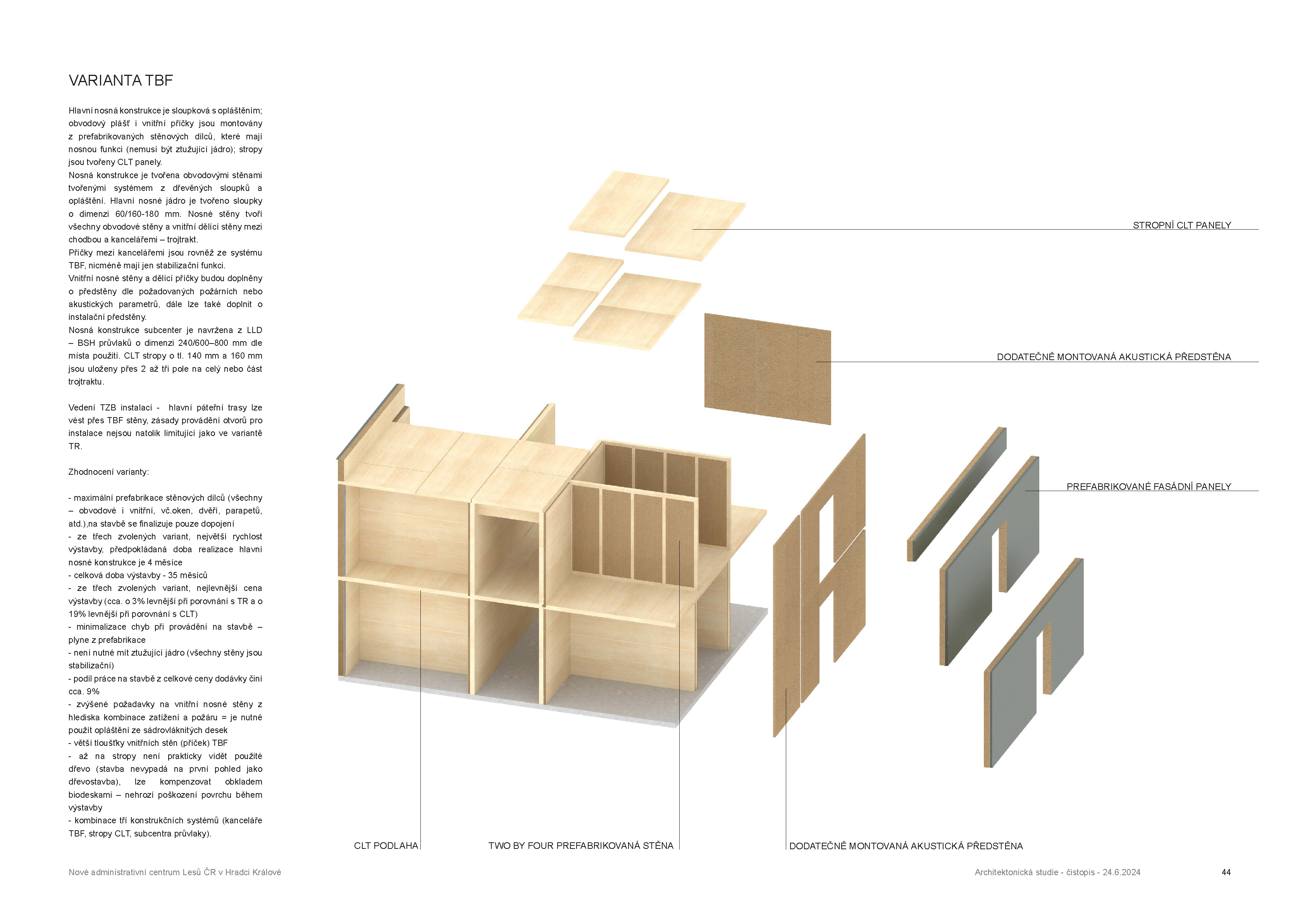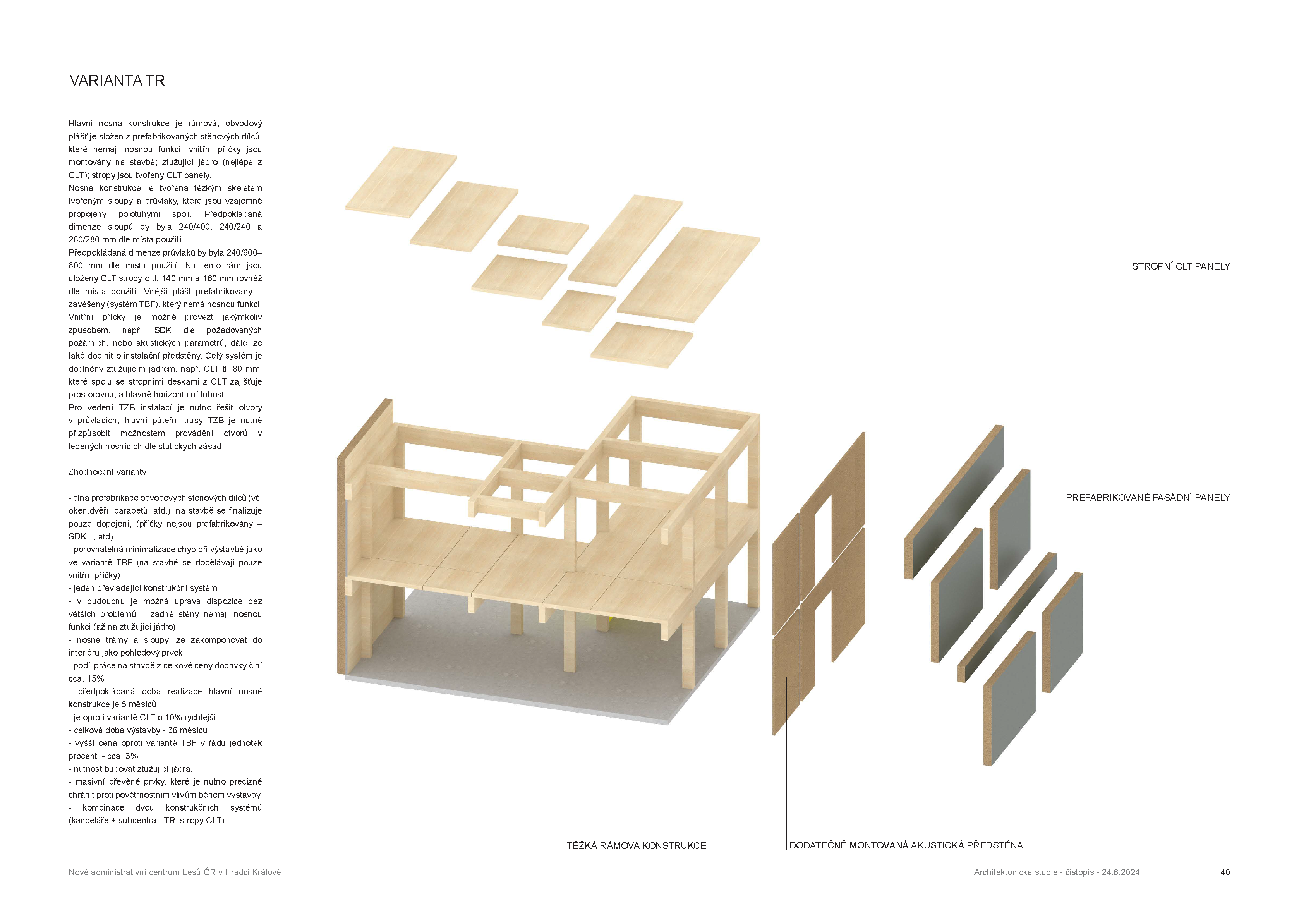 Obnovení přípravy projektu Nového administrativního centra LČR v Hradci Králové bylo zahájeno na základě souhlasu ministra Ing. Zdeňka Nekuly ze dne 22.7.2022 (Dopis č.j. MZE-40994/2022-16221). Nynější příprava projektu navazuje na vítězný návrh Sdružení SDRUŽENÍ CHYBIK + KRISTOF ASSOCIATED ARCHITECTS s. r. o. + K4 ARCHITECTS & ENGINEERS + Ing. Ivo Stolek, který je však kompletně přepracován tak, aby se jednalo o vzorovou dřevostavbu, která bude kombinovat více konstrukčních systémů (rámová konstrukce, CLT panely a 2by4). Kombinace těchto konstrukčních systémů byla zvolena na základě zpracované Studie konstrukčních řešení – jedná se o nejefektivnější kombinaci konstrukčních systémů, která zajistí požadovanou rychlost výstavby (prefabrikace), subtilnost a efektivnost nosné konstrukce.