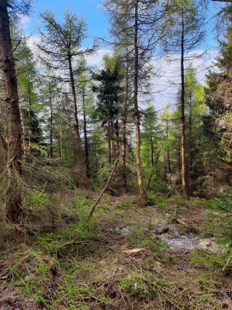 Těžký mokrý sníh plošně poškodil v lednu 2022 celkem 3,35 hektarů lesa v katastru Košťan a Pastvin u Moldavy v Ústeckém kraji. Zlomil nebo nalomil větve a vrcholky stromů, další vyvrátil nebo doformoval. Lesy ČR porost během roku a půl obnovily za 1 187 305 korun. Evropská unie přispěla 397 541 korunami. „Na ploše teď roste řada dřevin, například buky, javory, jedle, jeřáby i smrky. Před zvěří chrání část nového lesa oplocenky, stromky bez oplocení jsme ošetřili repelenty proti zvěři. Vysadili jsme jich 17 600,“ uvedl Aleš Kilb, lesní správce z Litvínova.