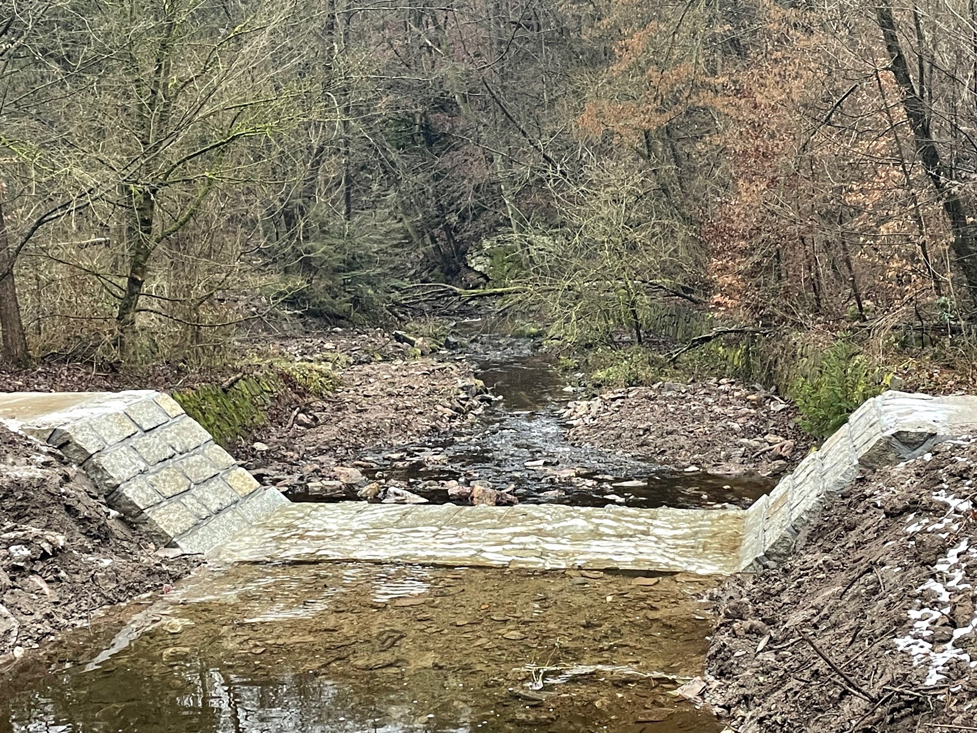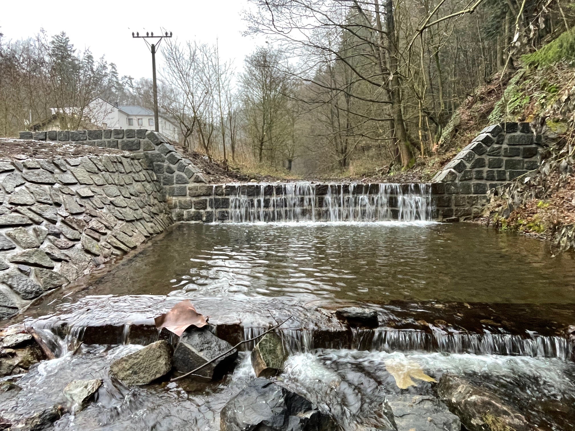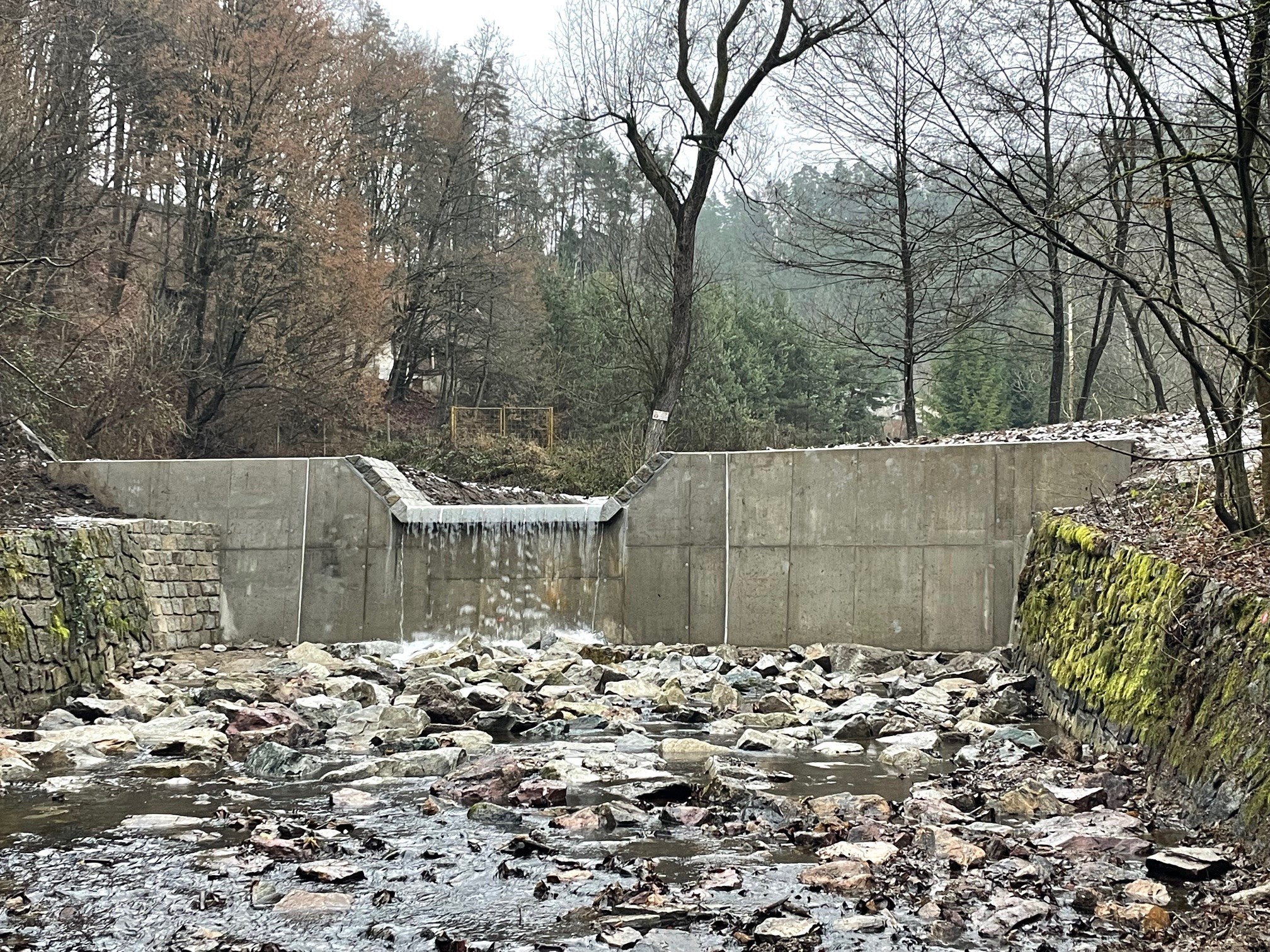 v ř. km 8,523. Tento stupeň byl rozebrán a nahrazen novou konstrukcí. Realizovaná opatření zajistí bezpečné převedení velkých vod, zlepší protierozní ochranu, ochranu pobřežních pozemků a lesní půdy.