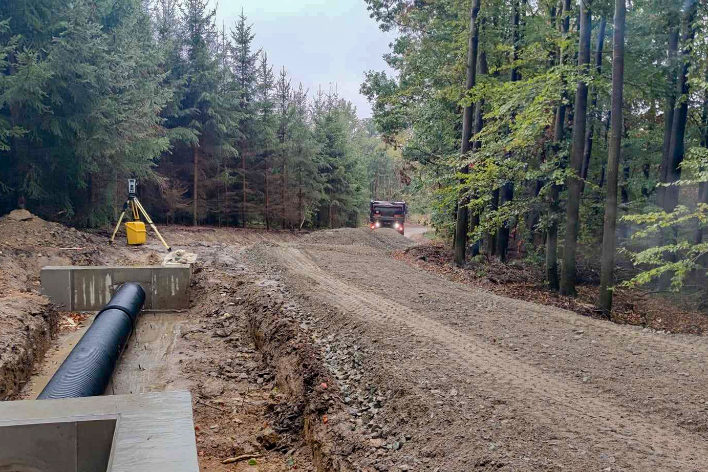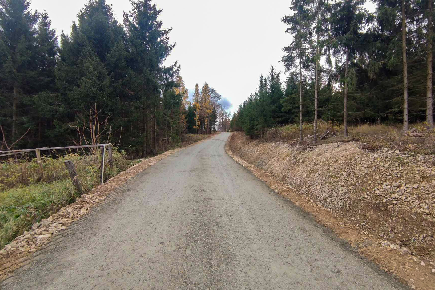 „Nejdříve bylo třeba odstranit traviny a humusovou vrstvu ve středu komunikace. Poté přikryla vyrovnaný profil štěrkodrť. Finální povrch tvoří mechanicky zpevněné kamenivo,“ říká Štěpán Pospíšil, lesní správce z Černé Hory. K odvodnění komunikace nově slouží pět nových trubních propustků a 23 svodnic odvádějících povrchovou dešťovou vodu do porostu. Zpevněné jsou nově i lesní sjezdy a výhybny, na kterých se cesta rozšiřuje.