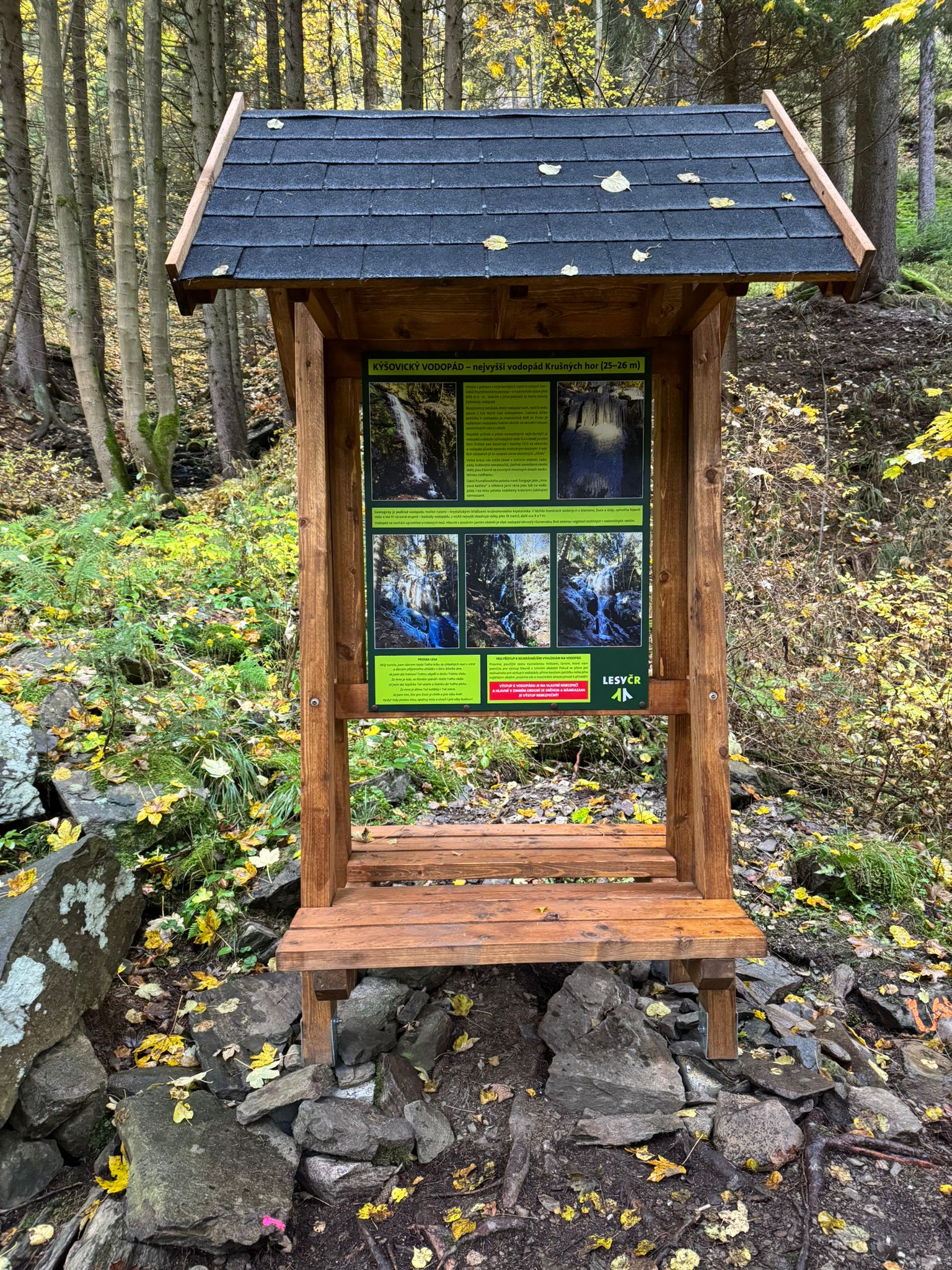 Loni jednu a letos druhou lávku s nosnou ocelovou konstrukcí a dubovým zábradlím instalovaly Lesy České republiky v Prunéřovském údolí na Chomutovsku. Turisté se po nich dostanou na žlutě značenou trasu a dále po modré k šestadvacetimetrovému Kýšovickému vodopádu se třemi kaskádami, největšímu v Krušných horách. „Před výstupem můžete nabrat síly v našem novém turistickém přístřešku, u kterého jsme také umístili dřevěnou hrazdu a houpačku pro děti. Na cestě narazíte i na dvě informační tabule se zajímavosti o vodopádu i okolních turistických stavbách a stezkách,“ řekl Stanislav Liška, lesní správce z Klášterce.