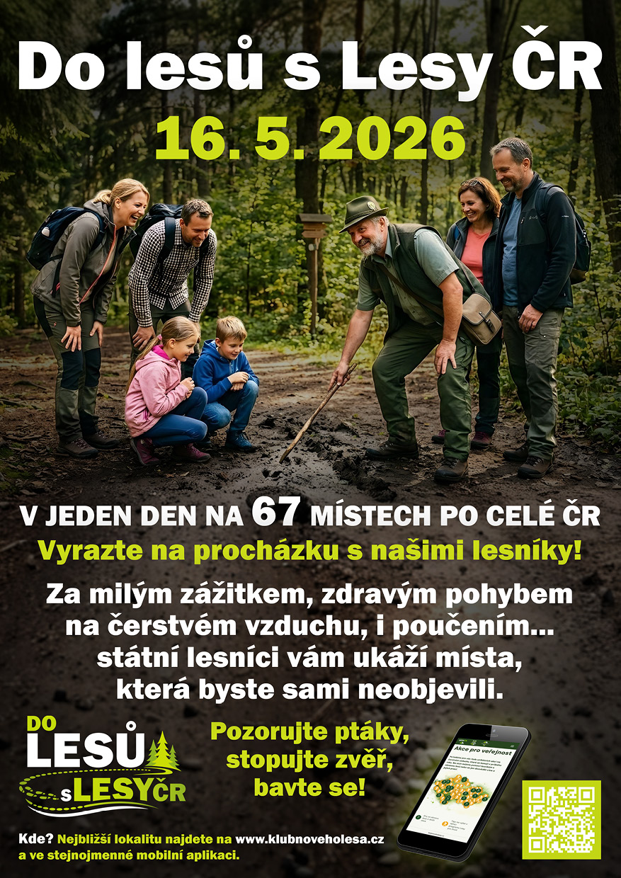 Hradec Králové, 27. dubna 2026 – Podívat se s lesníky do míst, která byste jinak sami neobjevili, a zeptat se jich na všechno, co souvisí s lesem nebo ochranou přírody, je možné v sobotu 16. května na 67 lokalitách v zemi. Nabízí se skvělá příležitost vyrazit “Do lesů s Lesy ČR“ za milým zážitkem, zdravým pohybem i poučením na čerstvém vzduchu.