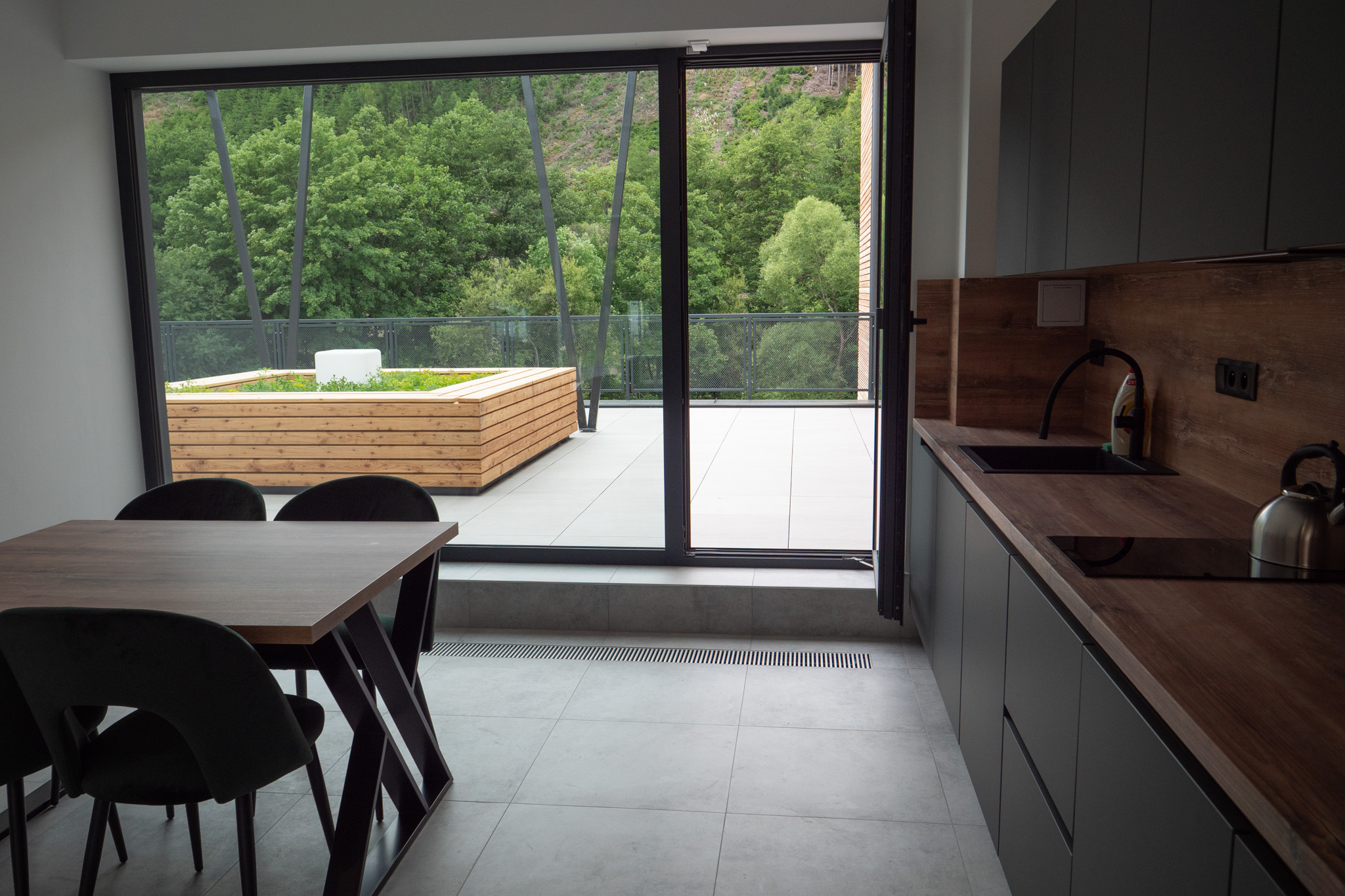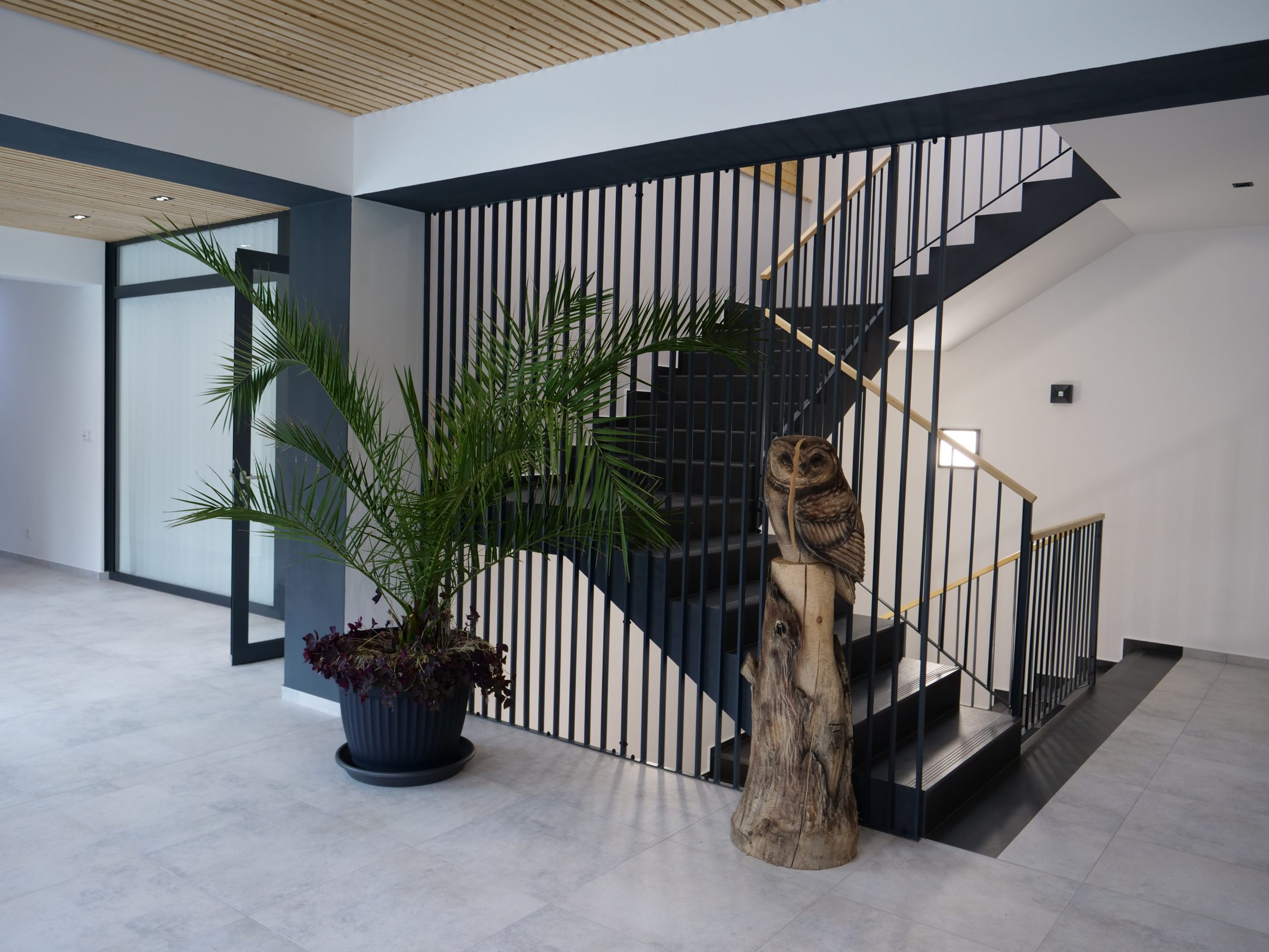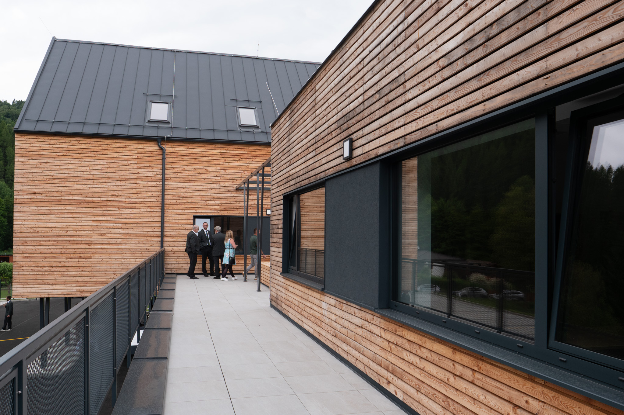 Na zpevněné ploše jsou chodníky a 23 parkovacích stání, k nimž přibydou ještě dvě nabíjecí stanice pro elektromobily. Budovu vytápí tepelná čerpadla, na střeše se počítá s fotovoltaikou.