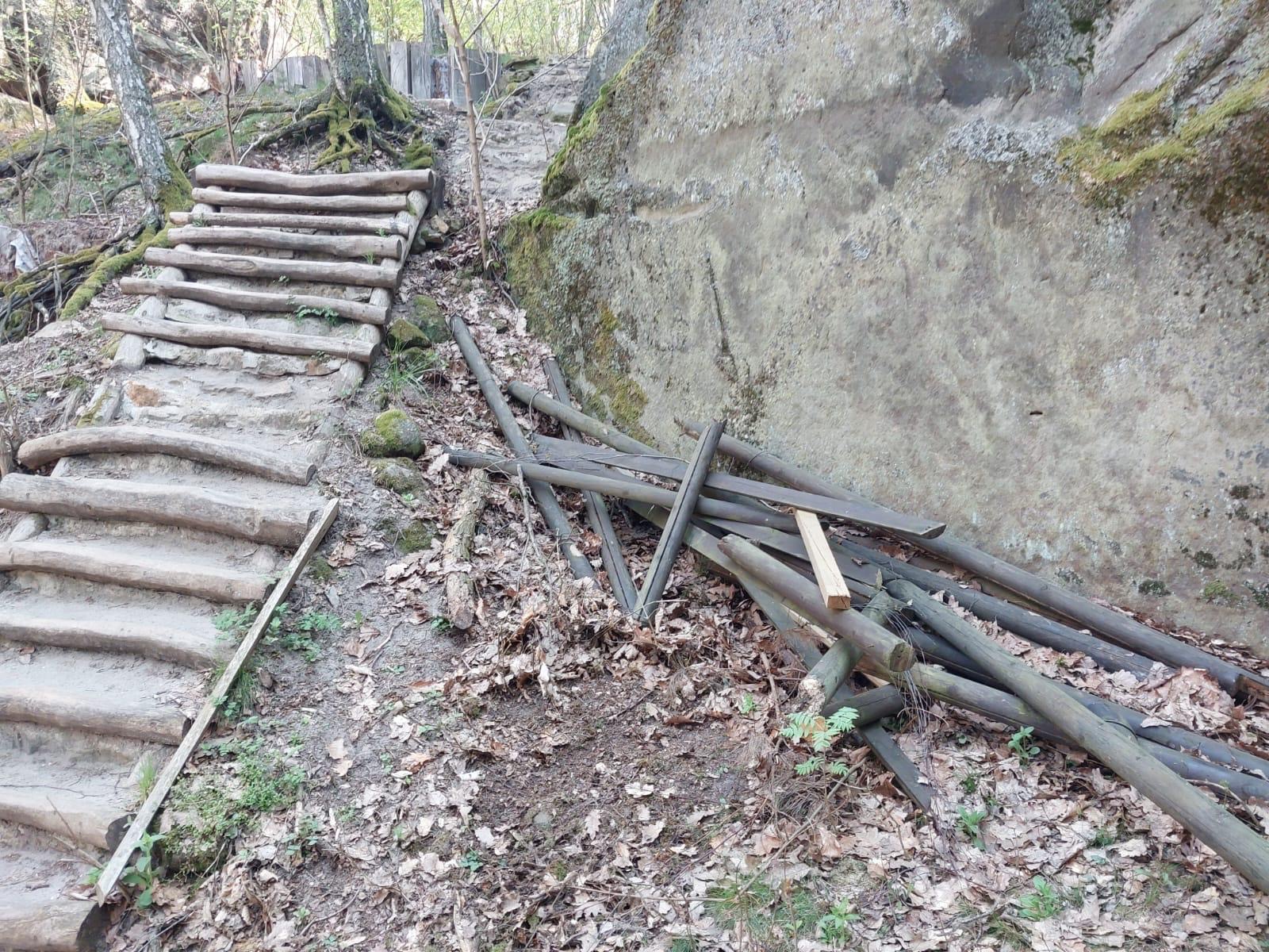 po 15. červnu. Drábské světničky se tak zřejmě zpřístupní o tři měsíce později, než se plánovalo, tedy na přelomu září a října. S tímto scénářem jsme s dodavatelskou firmou počítali a avizovali ho už loni na začátku projektu,“ uvedl Václav Bašta, severočeský oblastní ředitel Lesů ČR. Na místo se nebude přepravovat ani materiál a zastavují